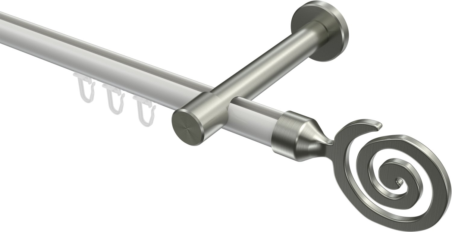 Gardinenstangen mit Innenlauf aus Aluminium / Metall in 20 mm Ø, 1-läufig, Modell PRESTIGE - Galaxa Weiß / Edelstahl-Optik