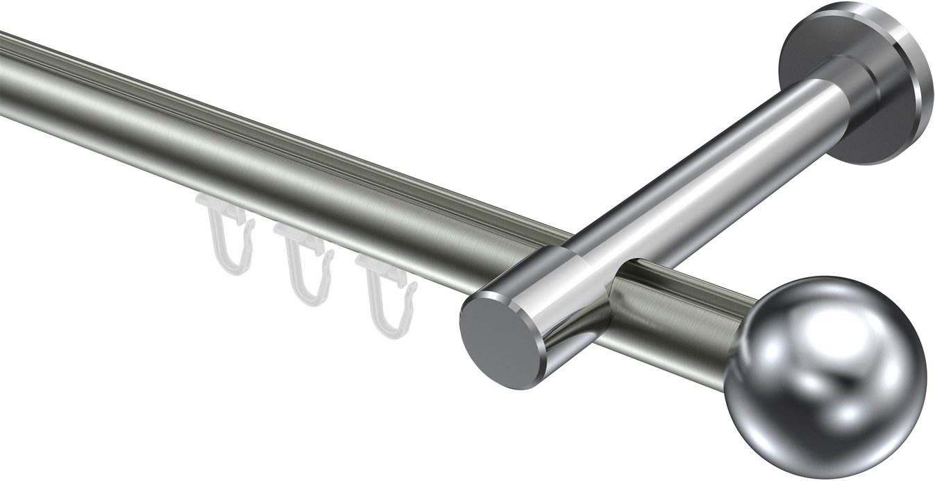 Gardinenstangen mit Innenlauf aus Aluminium / Metall in 20 mm Ø, 1-läufig, Modell PRESTIGE - Luino Edelstahl-Optik / Chrom