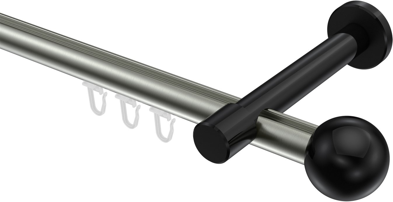 Gardinenstangen mit Innenlauf aus Aluminium / Metall in 20 mm Ø, 1-läufig, Modell PRESTIGE - Luino Edelstahl-Optik / Schwarz