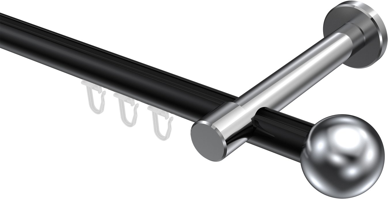 Gardinenstangen mit Innenlauf aus Aluminium / Metall in 20 mm Ø, 1-läufig, Modell PRESTIGE - Luino Schwarz / Chrom