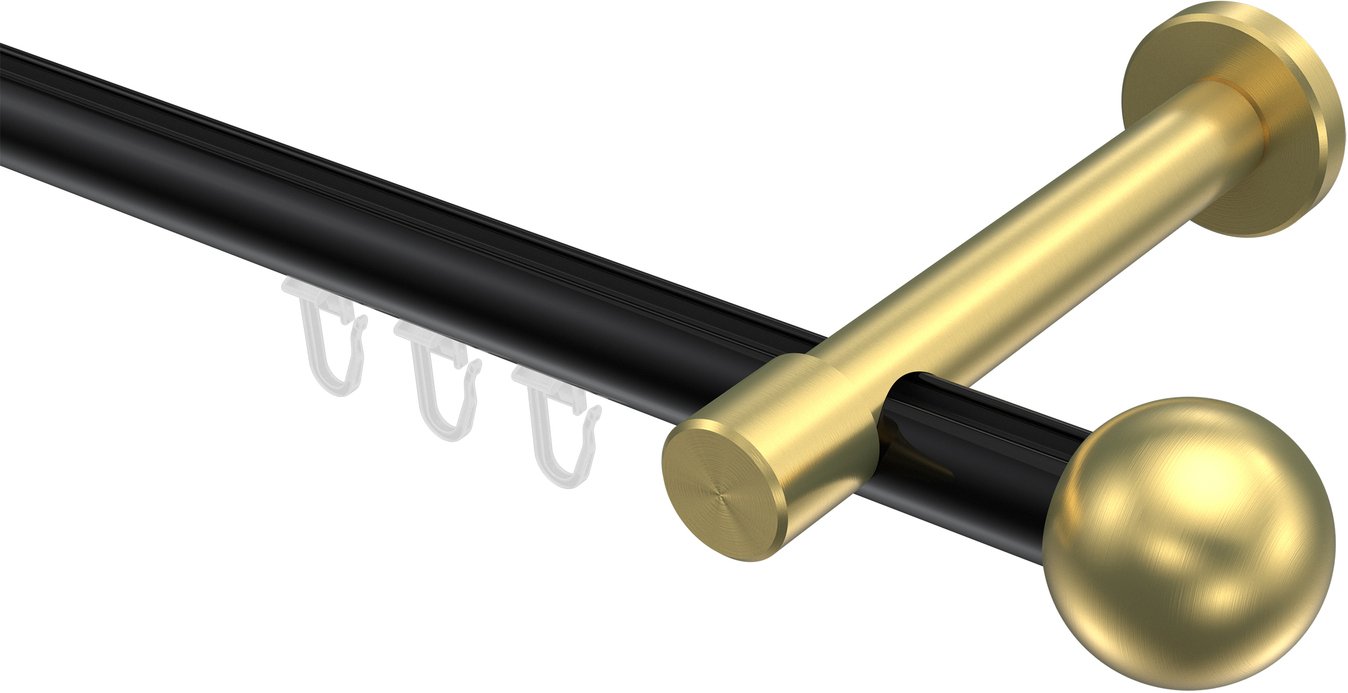 Informationen zu Innenlauf Gardinenstange Aluminium / Metall 20 mm Ø PRESTIGE - Luino Schwarz / Messing-Optik: