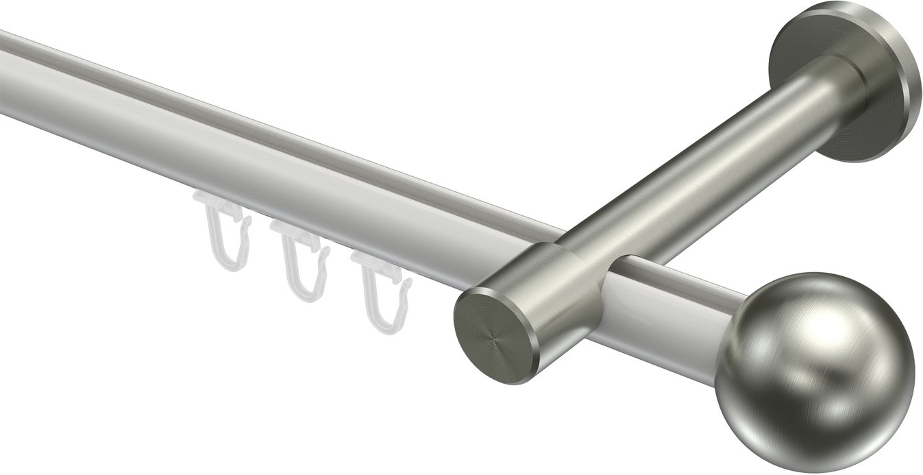 Gardinenstangen mit Innenlauf aus Aluminium / Metall in 20 mm Ø, 1-läufig, Modell PRESTIGE - Luino Weiß / Edelstahl-Optik