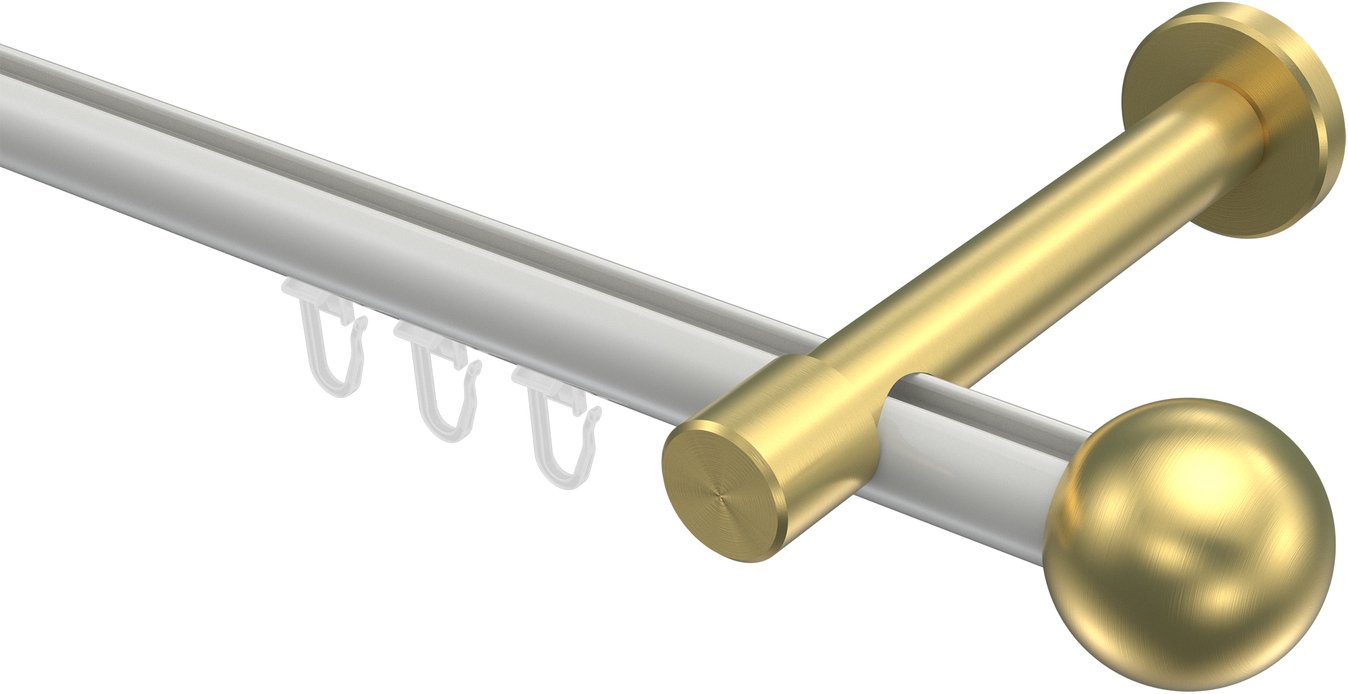 Informationen zu Innenlauf Gardinenstange Aluminium / Metall 20 mm Ø PRESTIGE - Luino Weiß / Messing-Optik:
