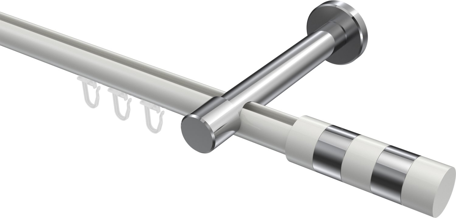 Gardinenstangen mit Innenlauf aus Aluminium / Metall in 20 mm Ø, 1-läufig, Modell PRESTIGE - Mavell Weiß / Chrom