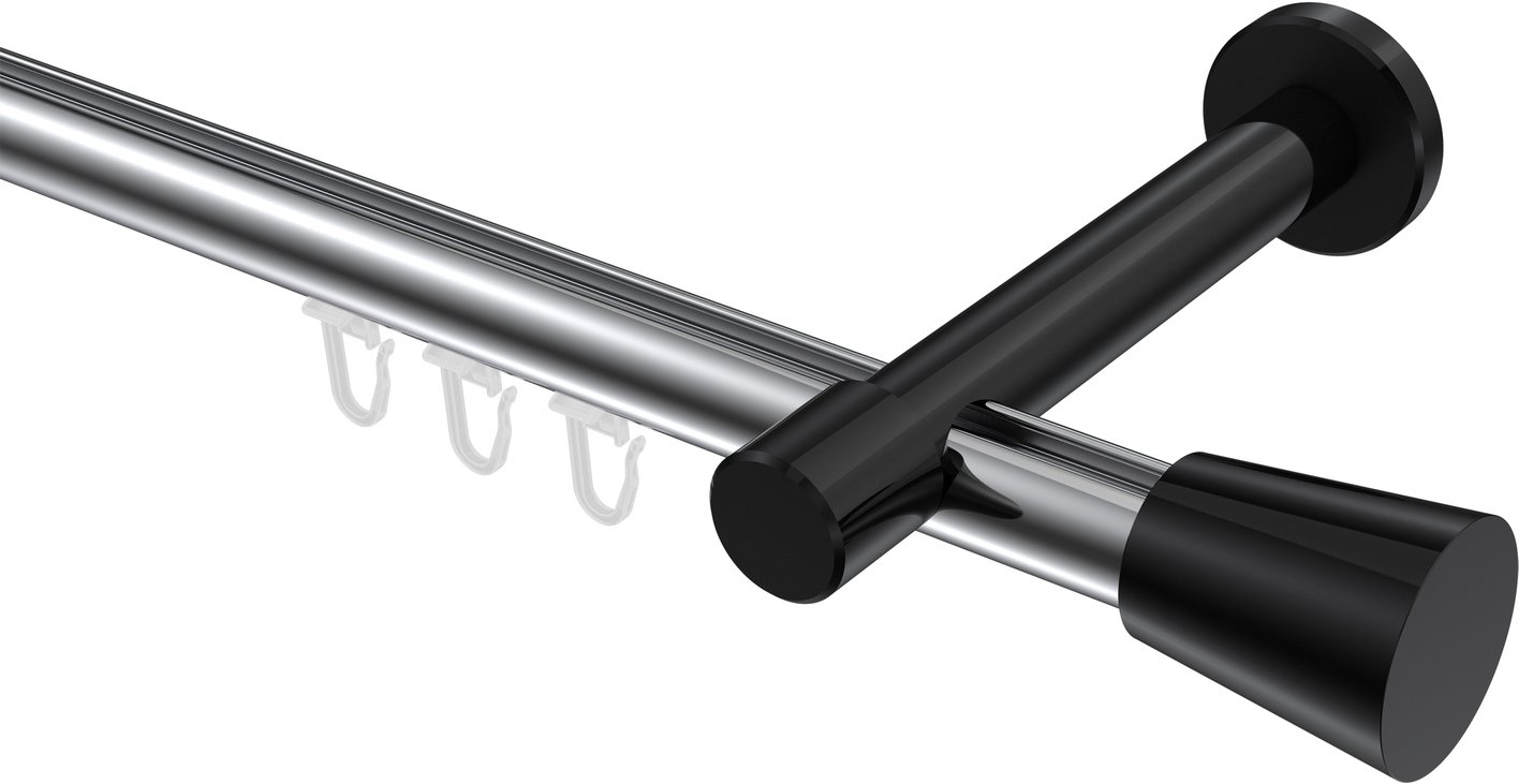 Gardinenstangen mit Innenlauf aus Aluminium / Metall in 20 mm Ø, 1-läufig, Modell PRESTIGE - Sitra Chrom / Schwarz
