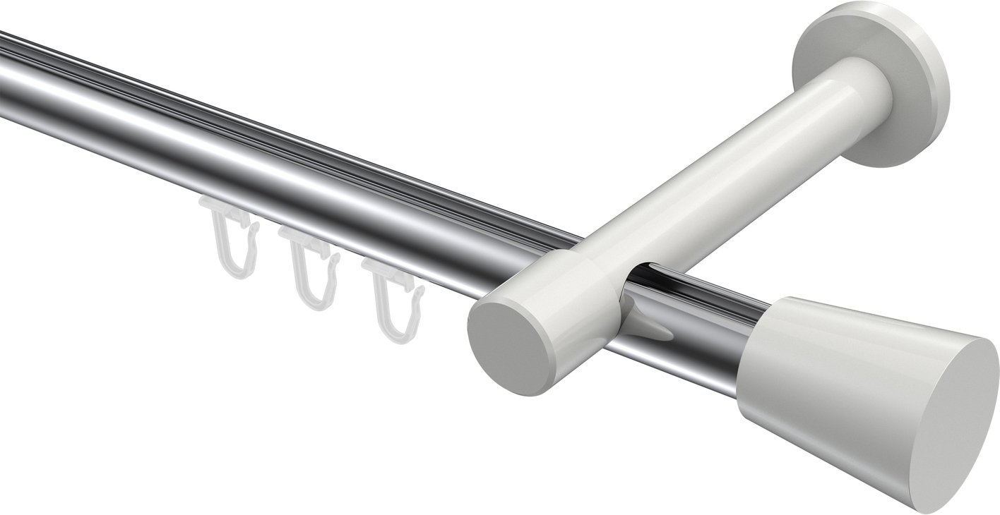 Gardinenstangen mit Innenlauf aus Aluminium / Metall in 20 mm Ø, 1-läufig, Modell PRESTIGE - Sitra Chrom / Weiß