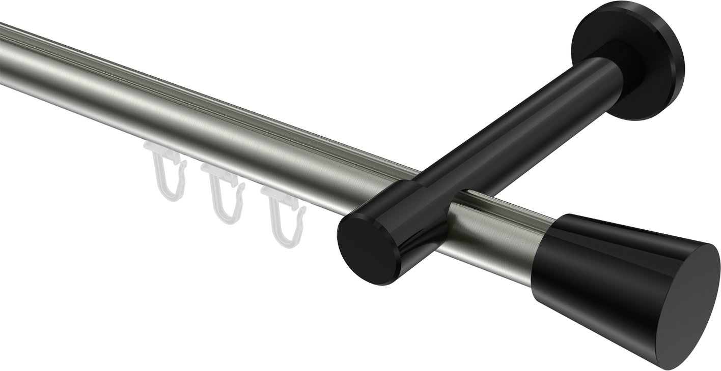 Gardinenstangen mit Innenlauf aus Aluminium / Metall in 20 mm Ø, 1-läufig, Modell PRESTIGE - Sitra Edelstahl-Optik / Schwarz