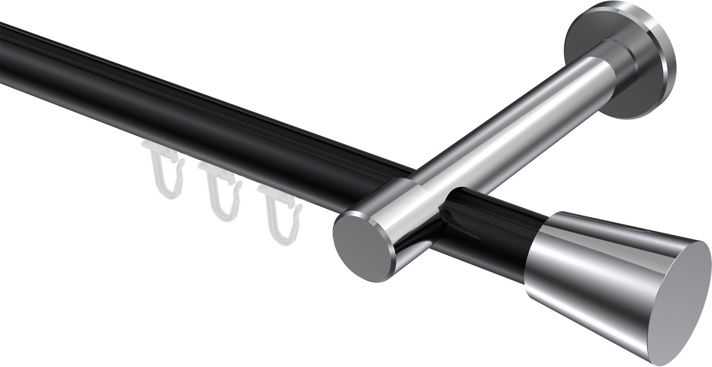Informationen zu Innenlauf Gardinenstange Aluminium / Metall 20 mm Ø PRESTIGE - Sitra Schwarz / Chrom: