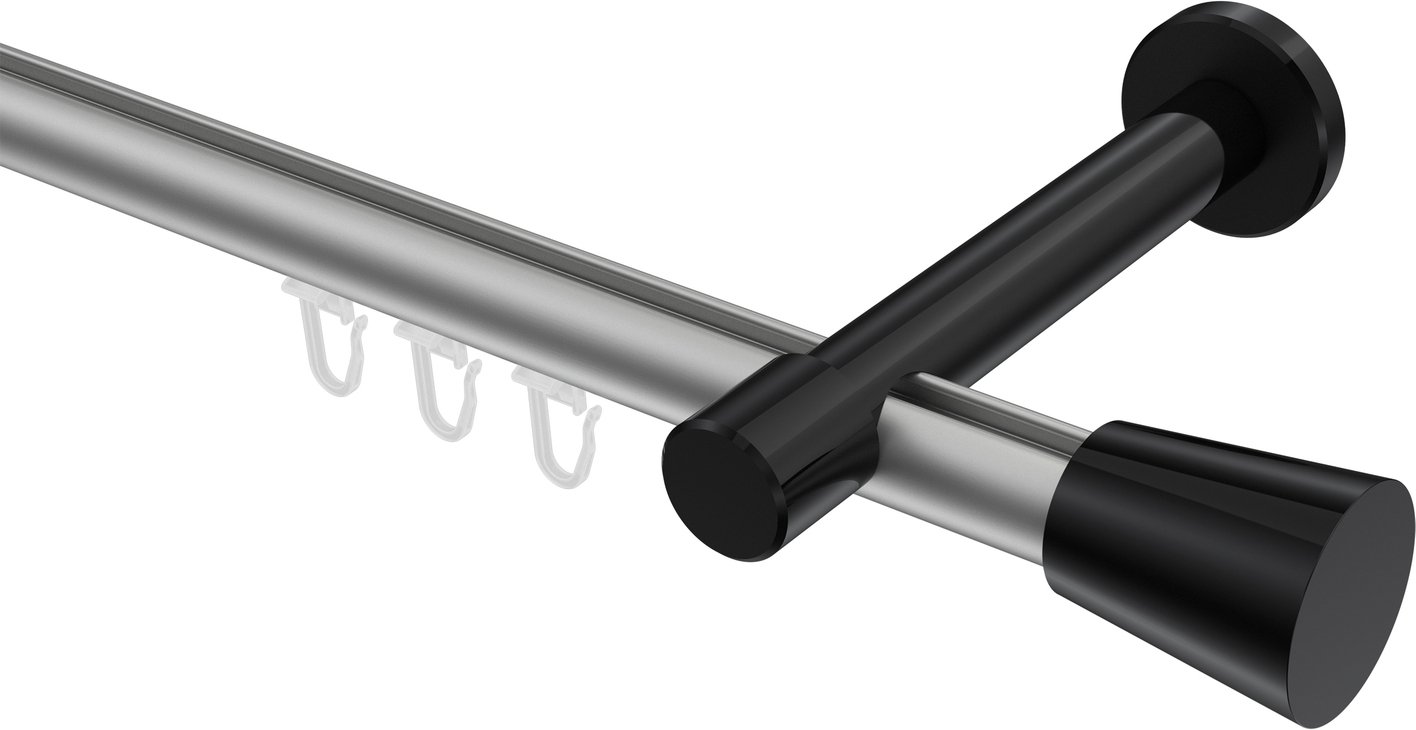 Gardinenstangen mit Innenlauf aus Aluminium / Metall in 20 mm Ø, 1-läufig, Modell PRESTIGE - Sitra Silbergrau / Schwarz