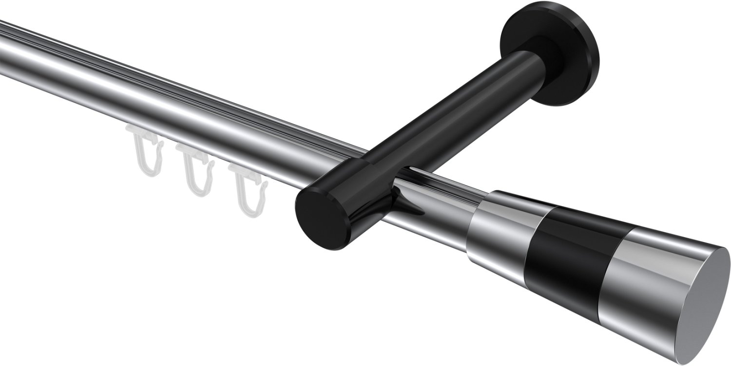 Gardinenstangen mit Innenlauf aus Aluminium / Metall in 20 mm Ø, 1-läufig, Modell PRESTIGE - Tanara Chrom / Schwarz