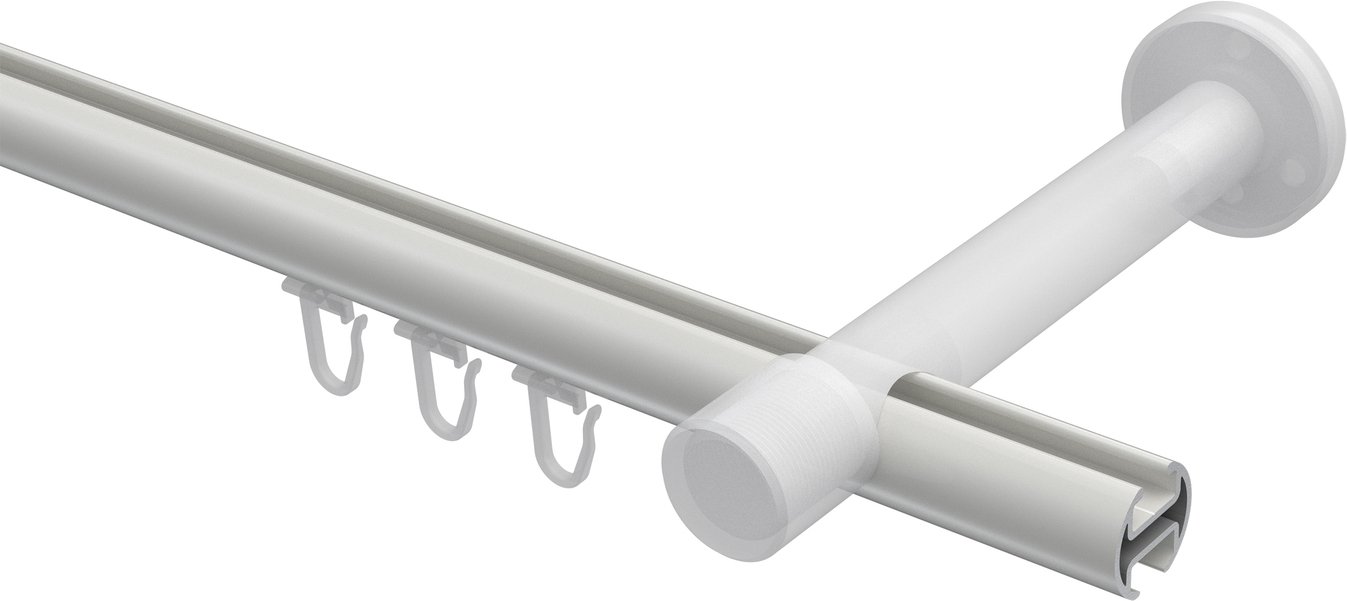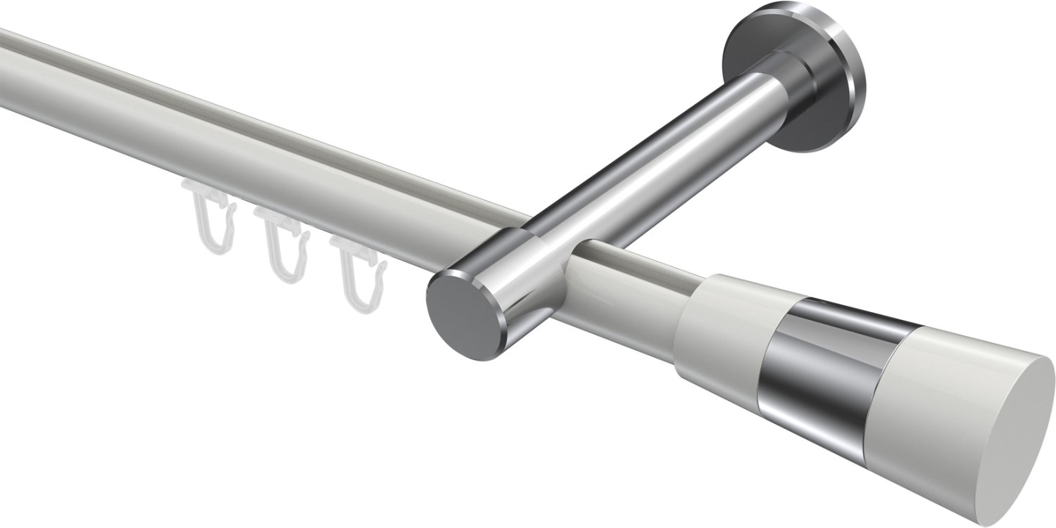 Gardinenstangen mit Innenlauf aus Aluminium / Metall in 20 mm Ø, 1-läufig, Modell PRESTIGE - Tanara Weiß / Chrom
