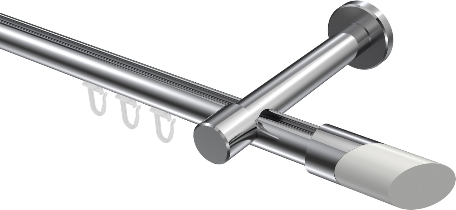 Gardinenstangen mit Innenlauf aus Aluminium / Metall in 20 mm Ø, 1-läufig, Modell PRESTIGE - Verano Chrom