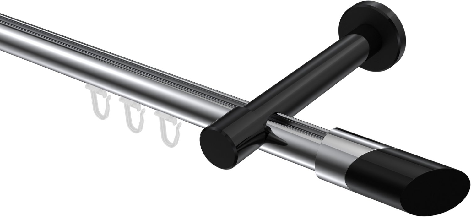 Gardinenstangen mit Innenlauf aus Aluminium / Metall in 20 mm Ø, 1-läufig, Modell PRESTIGE - Verano Chrom / Schwarz