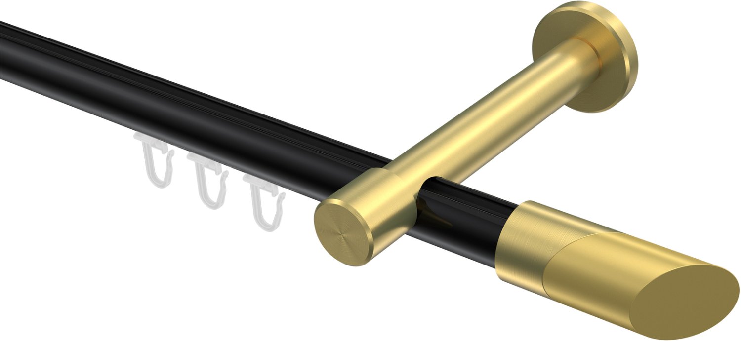 Gardinenstangen mit Innenlauf aus Aluminium / Metall in 20 mm Ø, 1-läufig, Modell PRESTIGE - Verano Schwarz / Messing-Optik