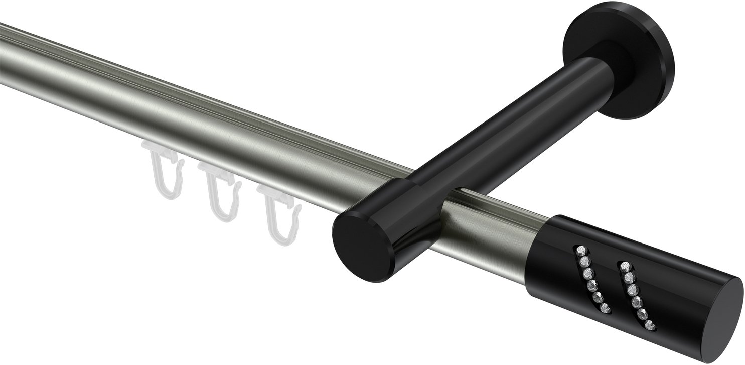 Informationen zu Innenlauf Gardinenstange Aluminium / Metall 20 mm Ø PRESTIGE - Zoena Edelstahl-Optik / Schwarz: