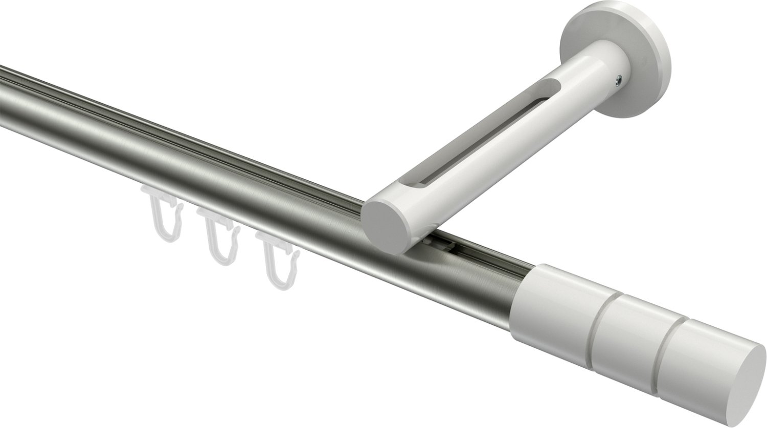 Gardinenstangen mit Innenlauf aus Aluminium / Metall in 20 mm Ø, 1-läufig, Modell SITENO - Elanto Edelstahl-Optik / Weiß