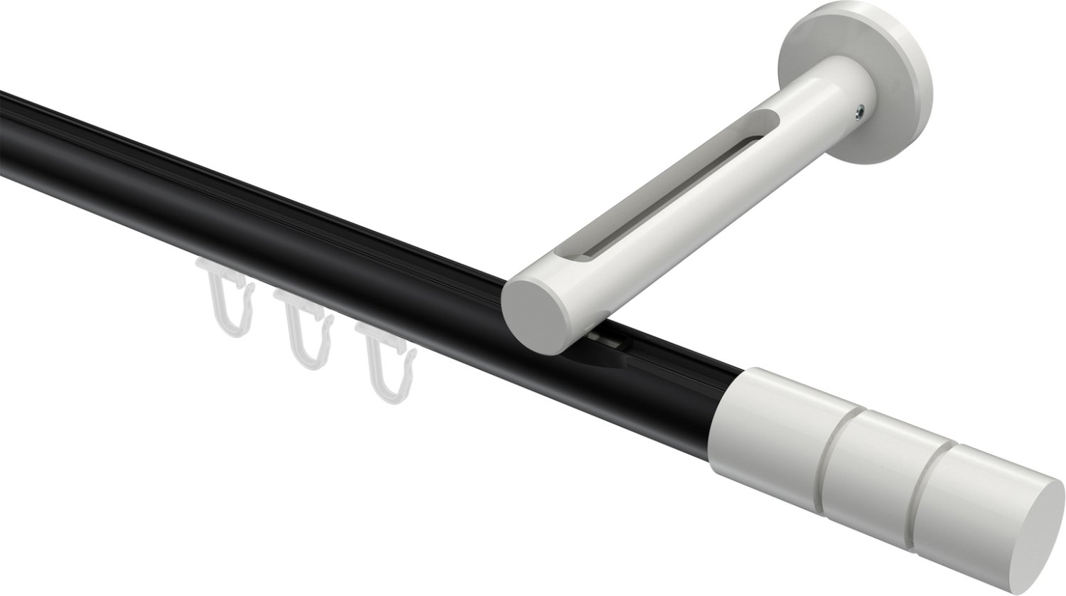 Gardinenstangen mit Innenlauf aus Aluminium / Metall in 20 mm Ø, 1-läufig, Modell SITENO - Elanto Schwarz / Weiß