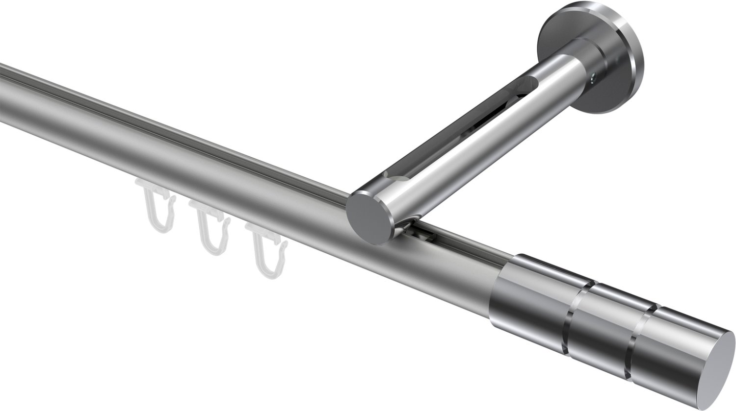 Gardinenstangen mit Innenlauf aus Aluminium / Metall in 20 mm Ø, 1-läufig, Modell SITENO - Elanto Silbergrau / Chrom