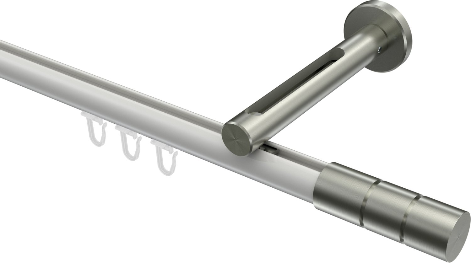 Gardinenstangen mit Innenlauf aus Aluminium / Metall in 20 mm Ø, 1-läufig, Modell SITENO - Elanto Weiß / Edelstahl-Optik