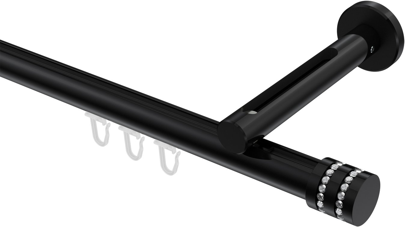 Gardinenstangen mit Innenlauf aus Aluminium / Metall in 20 mm Ø, 1-läufig, Modell SITENO - Estana Schwarz