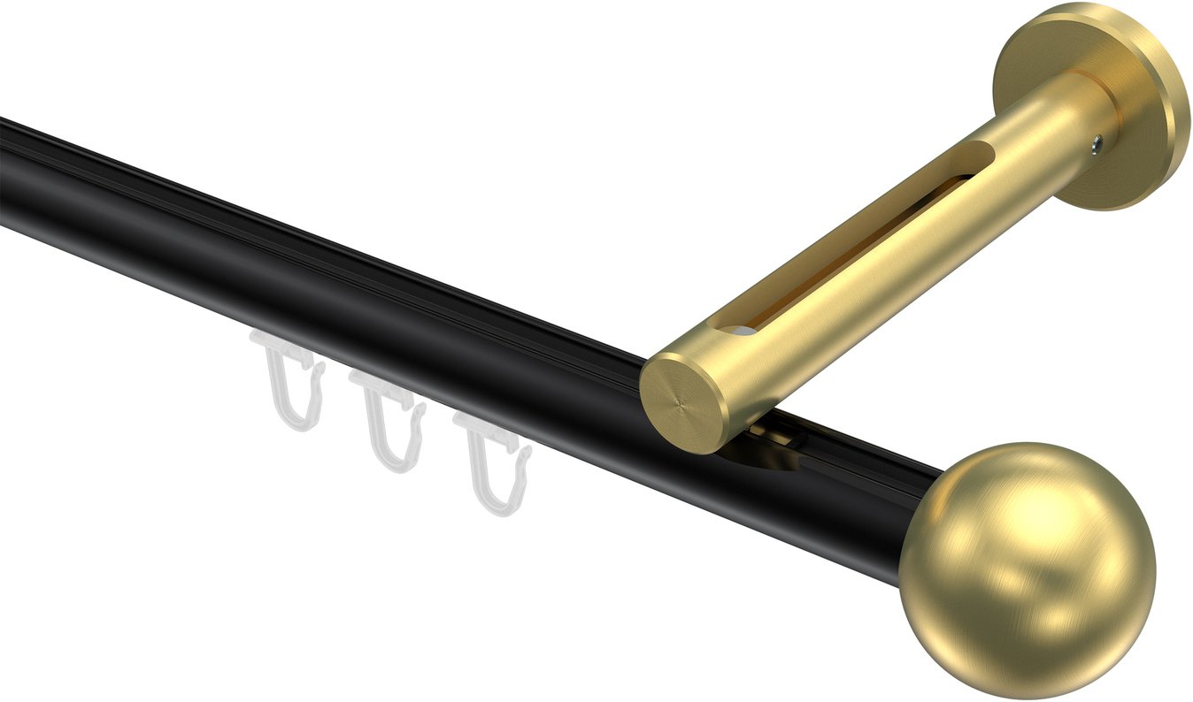 Gardinenstangen mit Innenlauf aus Aluminium / Metall in 20 mm Ø, 1-läufig, Modell SITENO - Luino Schwarz / Messing-Optik