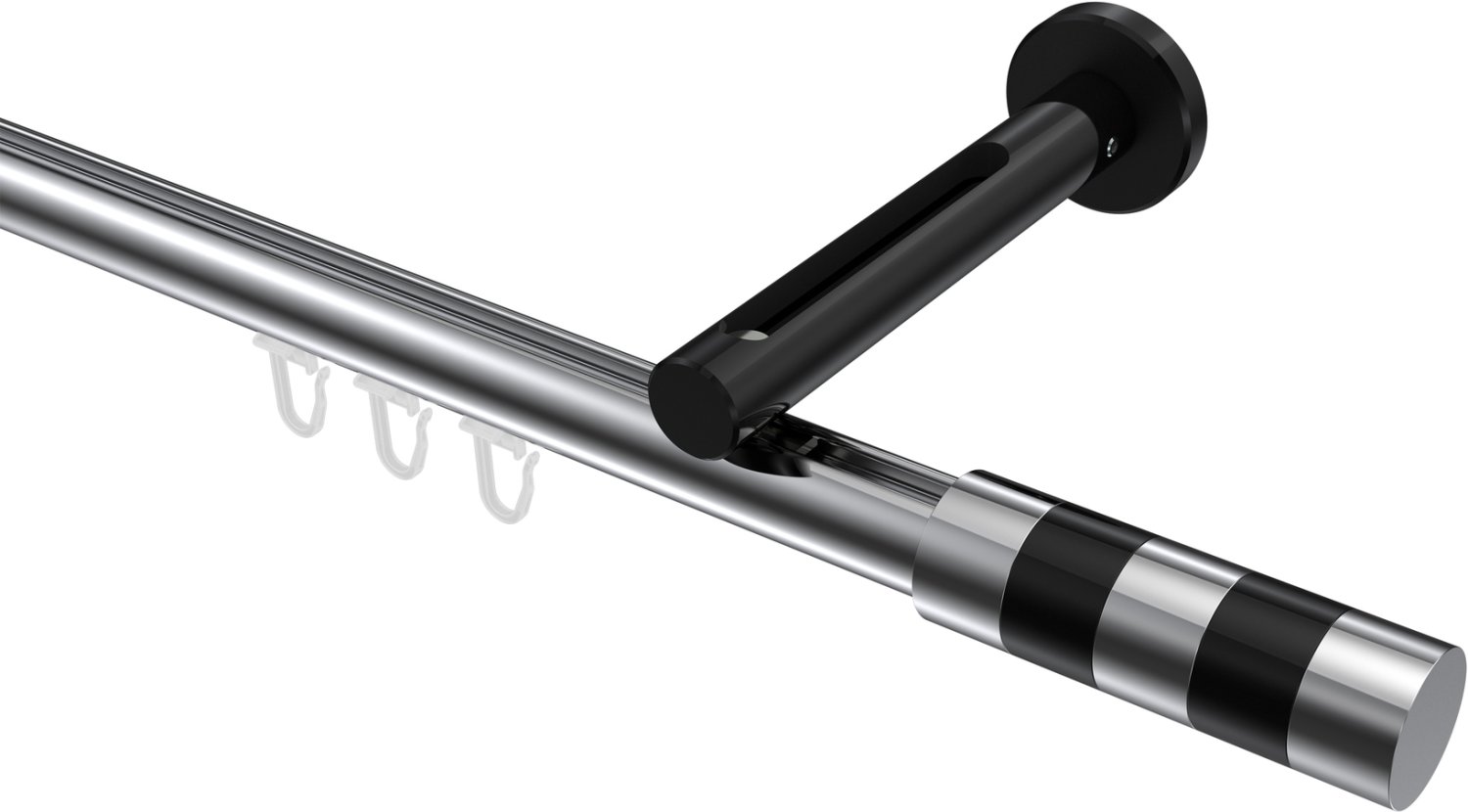 Gardinenstangen mit Innenlauf aus Aluminium / Metall in 20 mm Ø, 1-läufig, Modell SITENO - Mavell Chrom / Schwarz