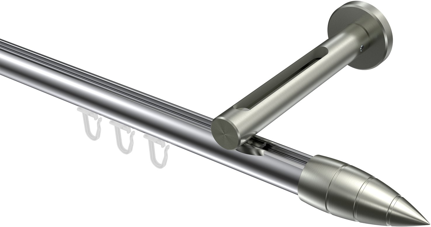 Gardinenstangen mit Innenlauf aus Aluminium / Metall in 20 mm Ø, 1-läufig, Modell SITENO - Samanto Chrom / Edelstahl-Optik