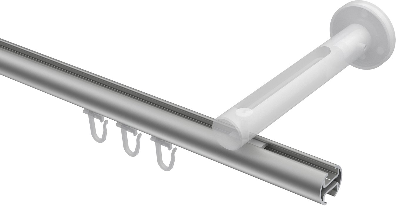 Gardinenstangen mit Innenlauf aus Aluminium / Metall in 20 mm Ø, 1-läufig, Modell SITENO - Samanto Silbergrau / Edelstahl-Optik