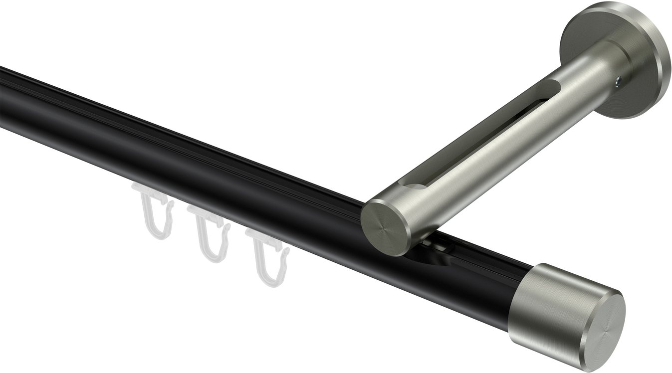 Gardinenstangen mit Innenlauf aus Aluminium / Metall in 20 mm Ø, 1-läufig, Modell SITENO - Santo Schwarz / Edelstahl-Optik