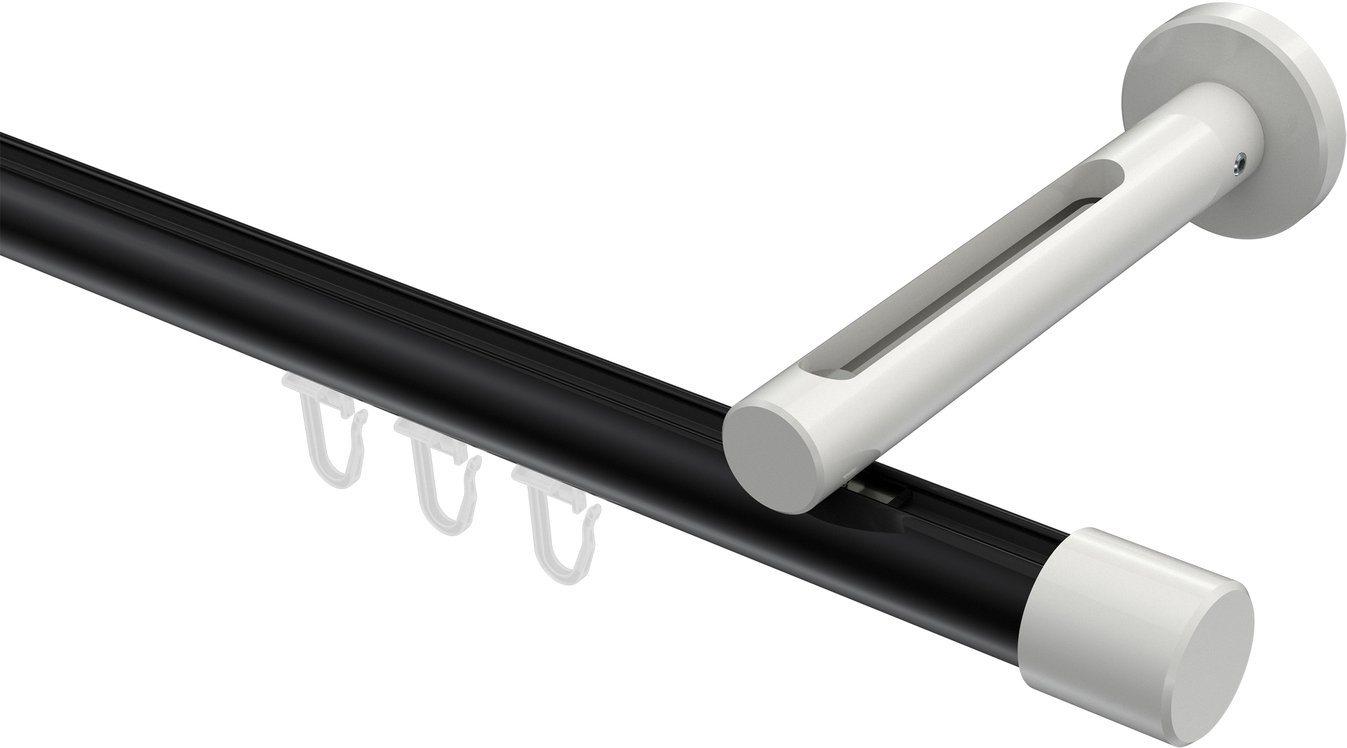 Gardinenstangen mit Innenlauf aus Aluminium / Metall in 20 mm Ø, 1-läufig, Modell SITENO - Santo Schwarz / Weiß
