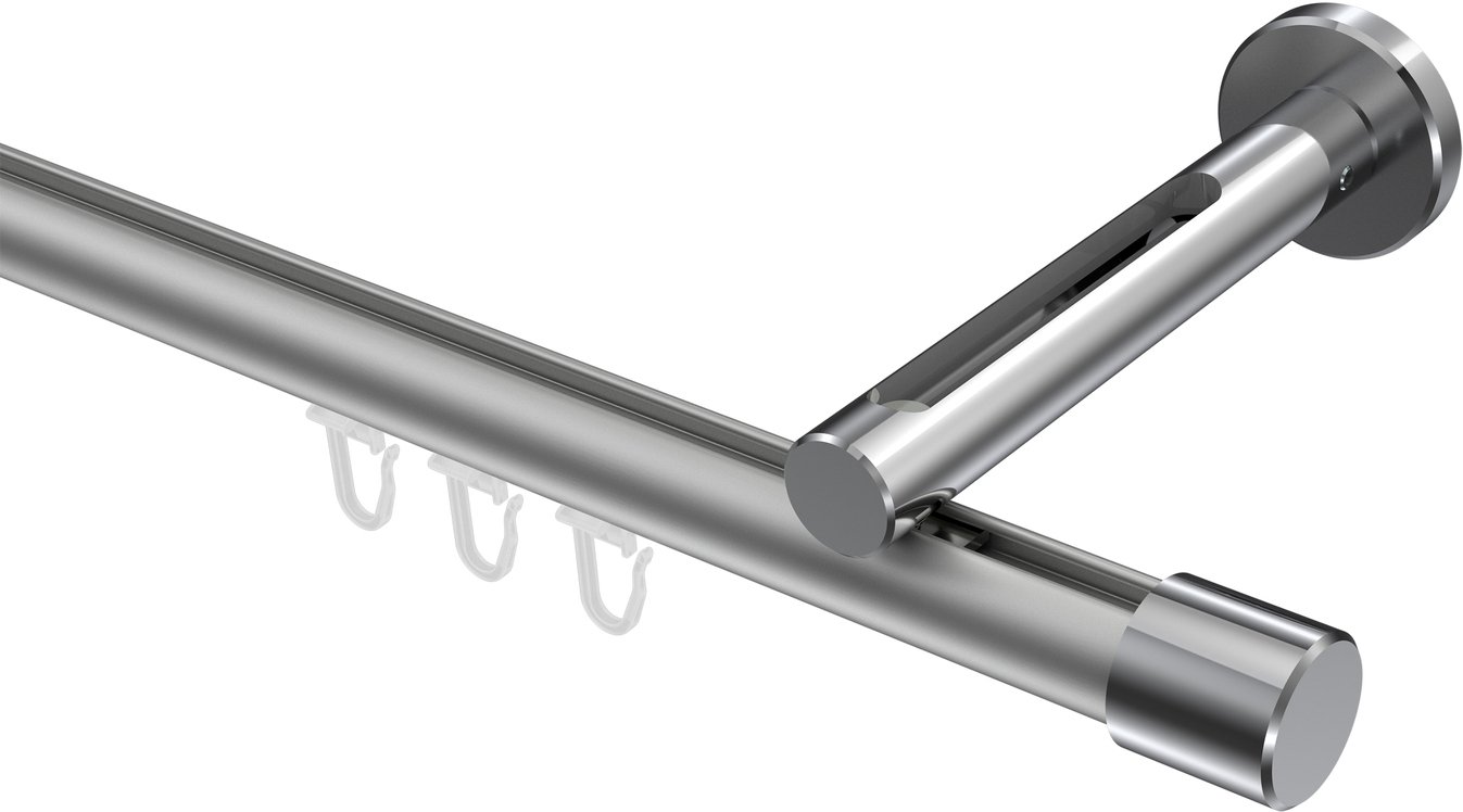 Gardinenstangen mit Innenlauf aus Aluminium / Metall in 20 mm Ø, 1-läufig, Modell SITENO - Santo Silbergrau / Chrom