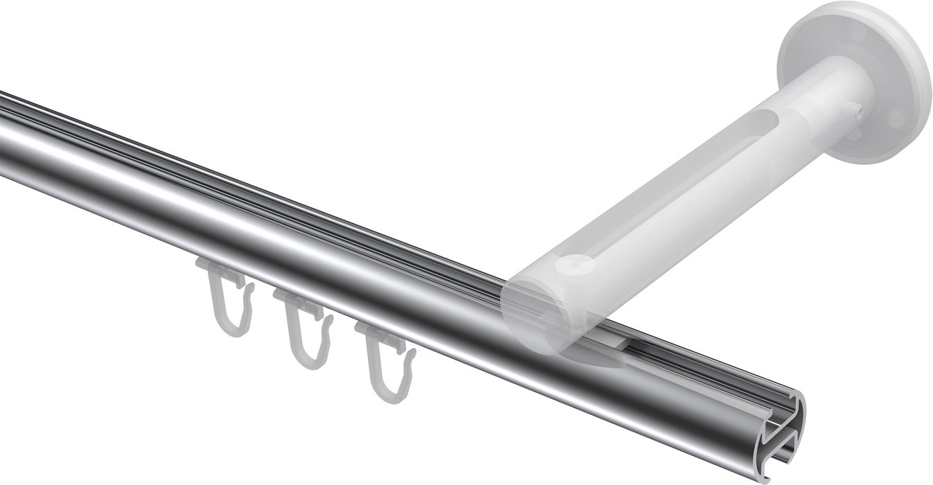 Gardinenstangen mit Innenlauf aus Aluminium / Metall in 20 mm Ø, 1-läufig, Modell SITENO - Savio Chrom / Weiß