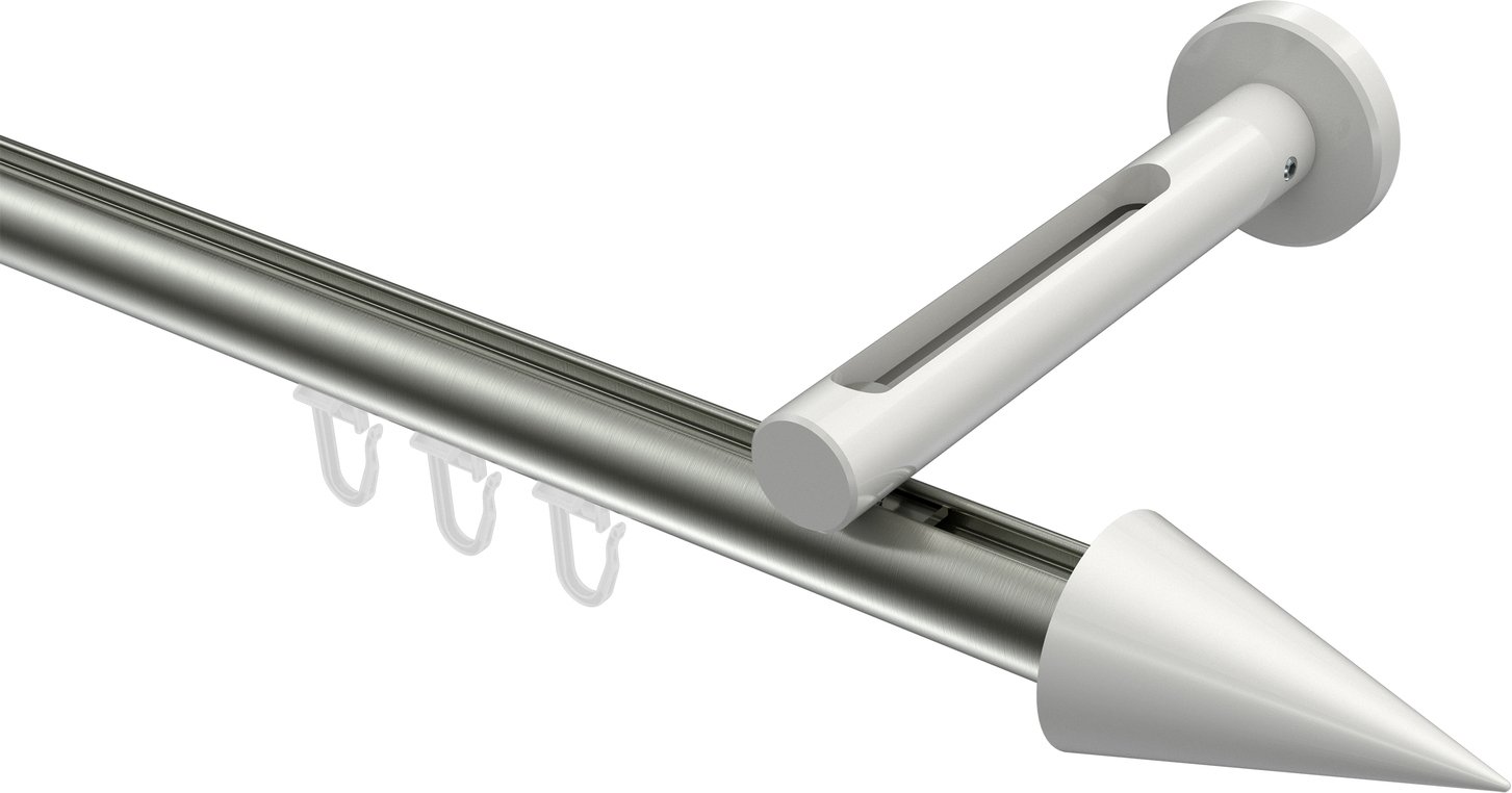 Informationen zu Innenlauf Gardinenstange Aluminium / Metall 20 mm Ø SITENO - Savio Edelstahl-Optik / Weiß: