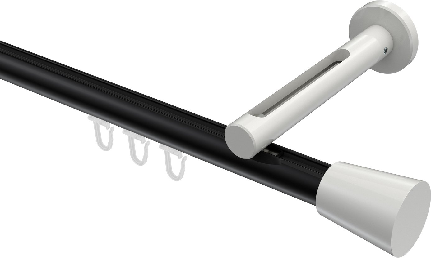 Gardinenstangen mit Innenlauf aus Aluminium / Metall in 20 mm Ø, 1-läufig, Modell SITENO - Sitra Schwarz / Weiß