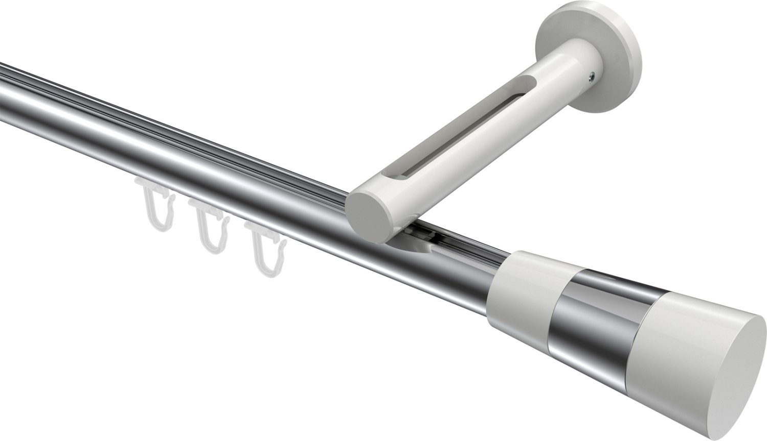 Gardinenstangen mit Innenlauf aus Aluminium / Metall in 20 mm Ø, 1-läufig, Modell SITENO - Tanara Chrom / Weiß