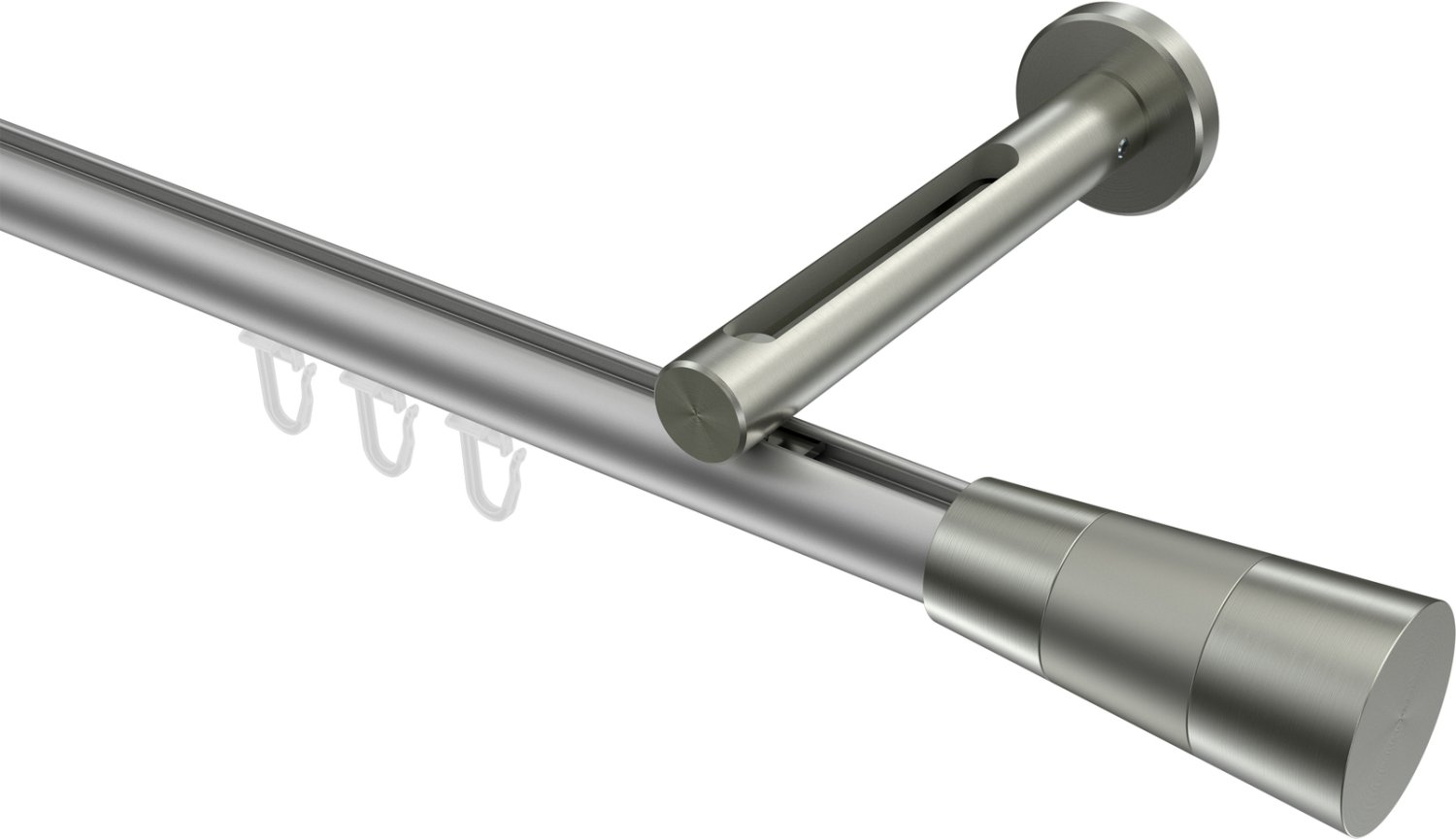 Gardinenstangen mit Innenlauf aus Aluminium / Metall in 20 mm Ø, 1-läufig, Modell SITENO - Tanara Silbergrau / Edelstahl-Optik
