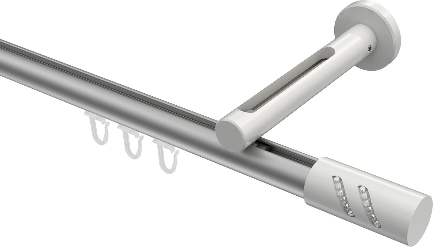 Gardinenstangen mit Innenlauf aus Aluminium / Metall in 20 mm Ø, 1-läufig, Modell SITENO - Zoena Silbergrau / Weiß