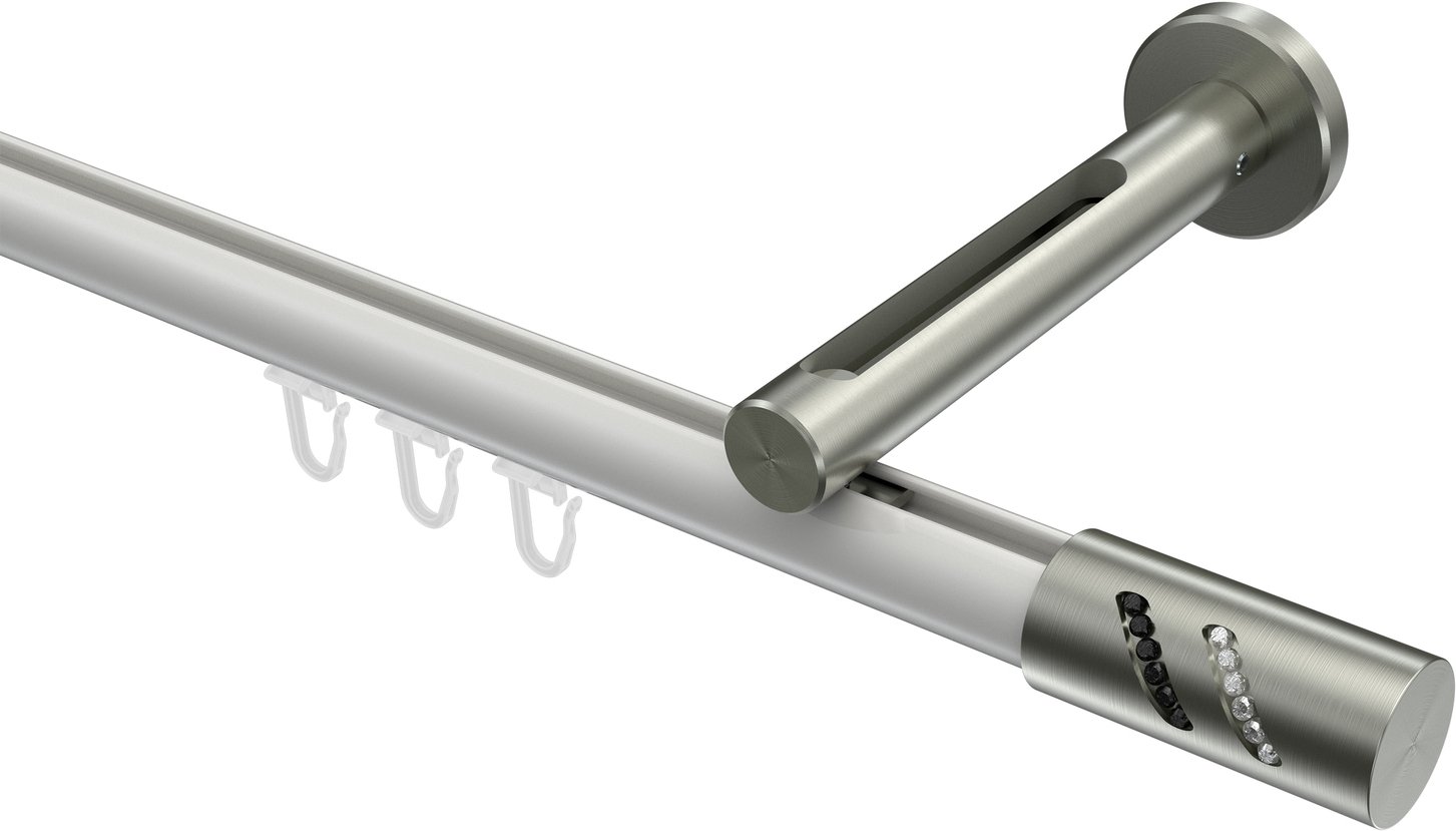 Gardinenstangen mit Innenlauf aus Aluminium / Metall in 20 mm Ø, 1-läufig, Modell SITENO - Zoena Weiß / Edelstahl-Optik