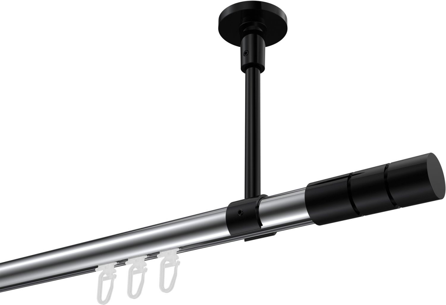 Gardinenstangen mit Innenlauf aus Aluminium / Metall in 20 mm Ø, 1-läufig, Modell SONETTE - Elanto Chrom / Schwarz