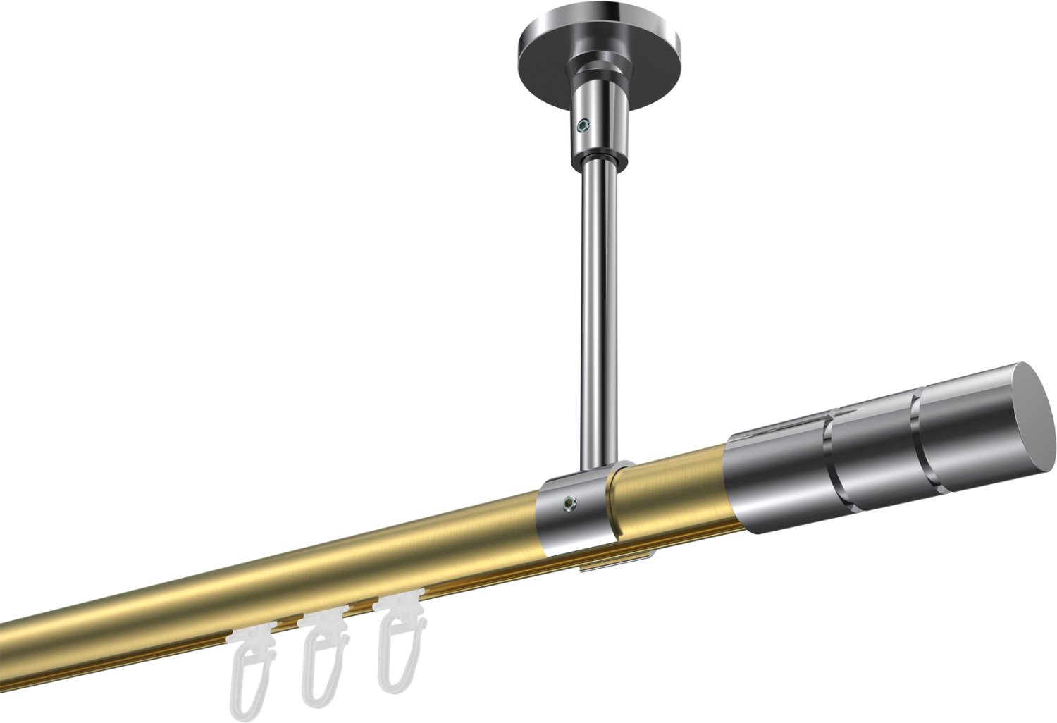 Gardinenstangen mit Innenlauf aus Aluminium / Metall in 20 mm Ø, 1-läufig, Modell SONETTE - Elanto Messing-Optik / Chrom