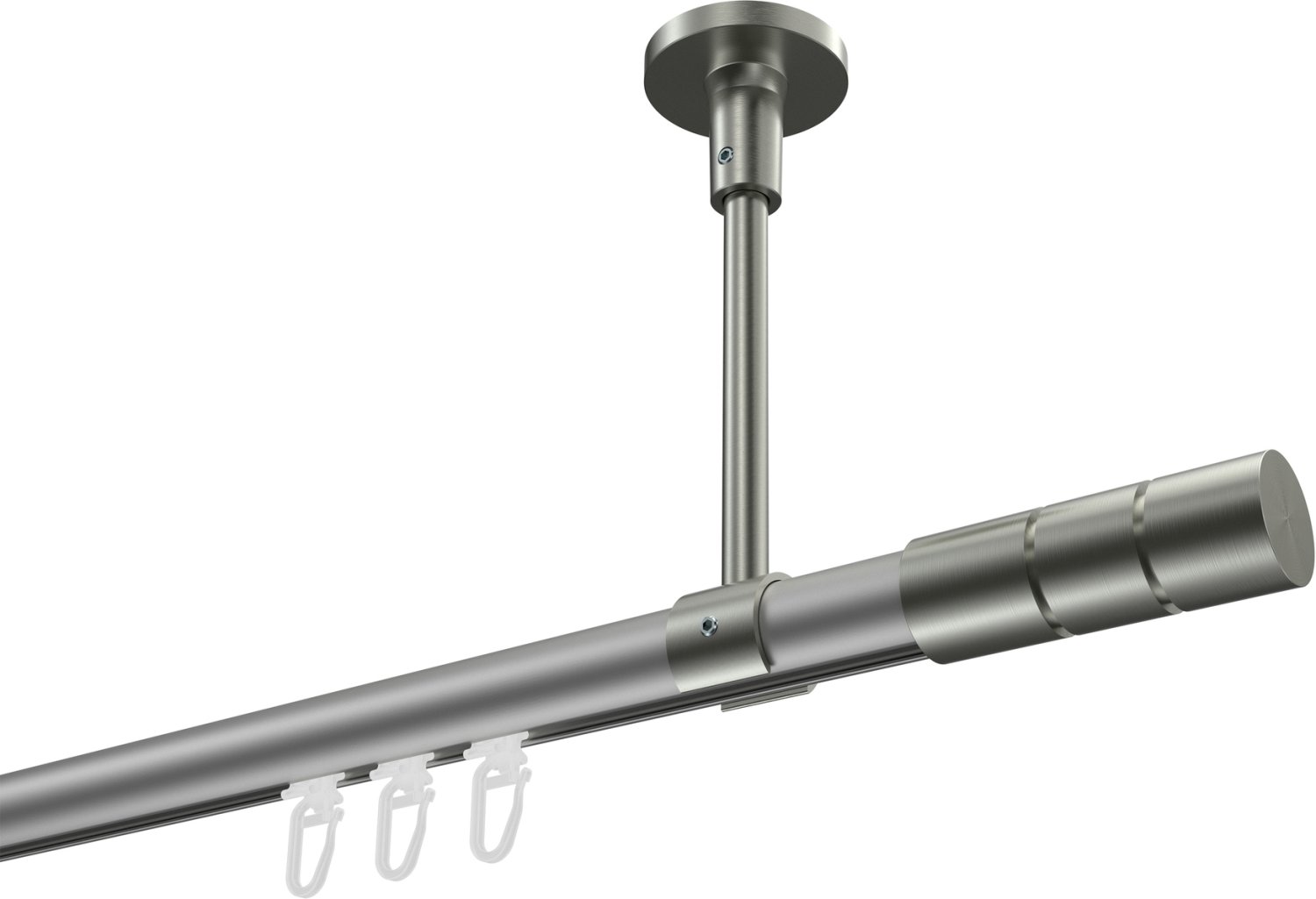 Gardinenstangen mit Innenlauf aus Aluminium / Metall in 20 mm Ø, 1-läufig, Modell SONETTE - Elanto Silbergrau / Edelstahl-Optik