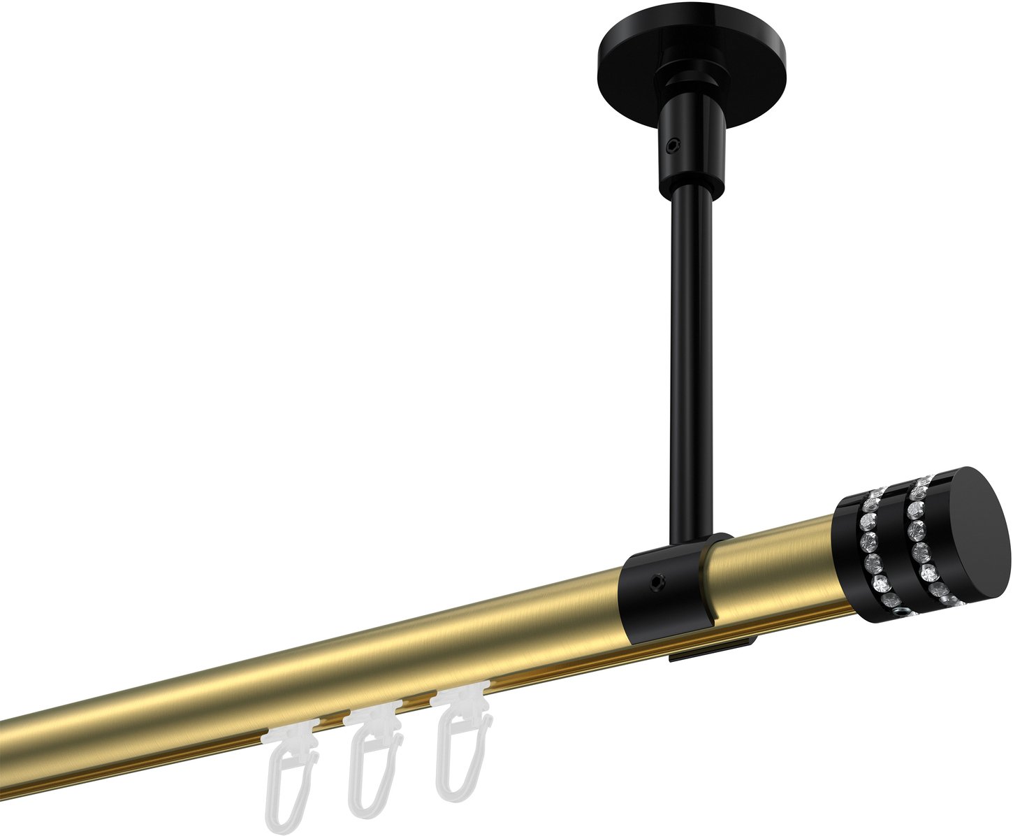 Gardinenstangen mit Innenlauf aus Aluminium / Metall in 20 mm Ø, 1-läufig, Modell SONETTE - Estana Messing-Optik / Schwarz