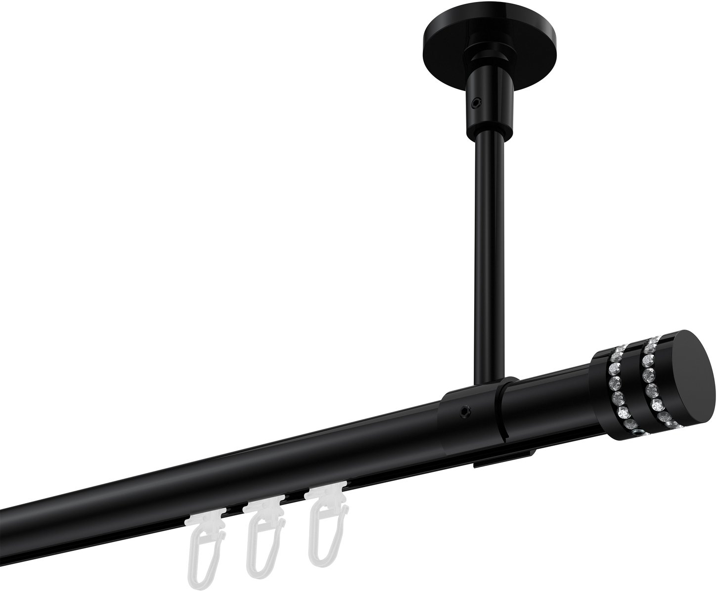 Gardinenstangen mit Innenlauf aus Aluminium / Metall in 20 mm Ø, 1-läufig, Modell SONETTE - Estana Schwarz