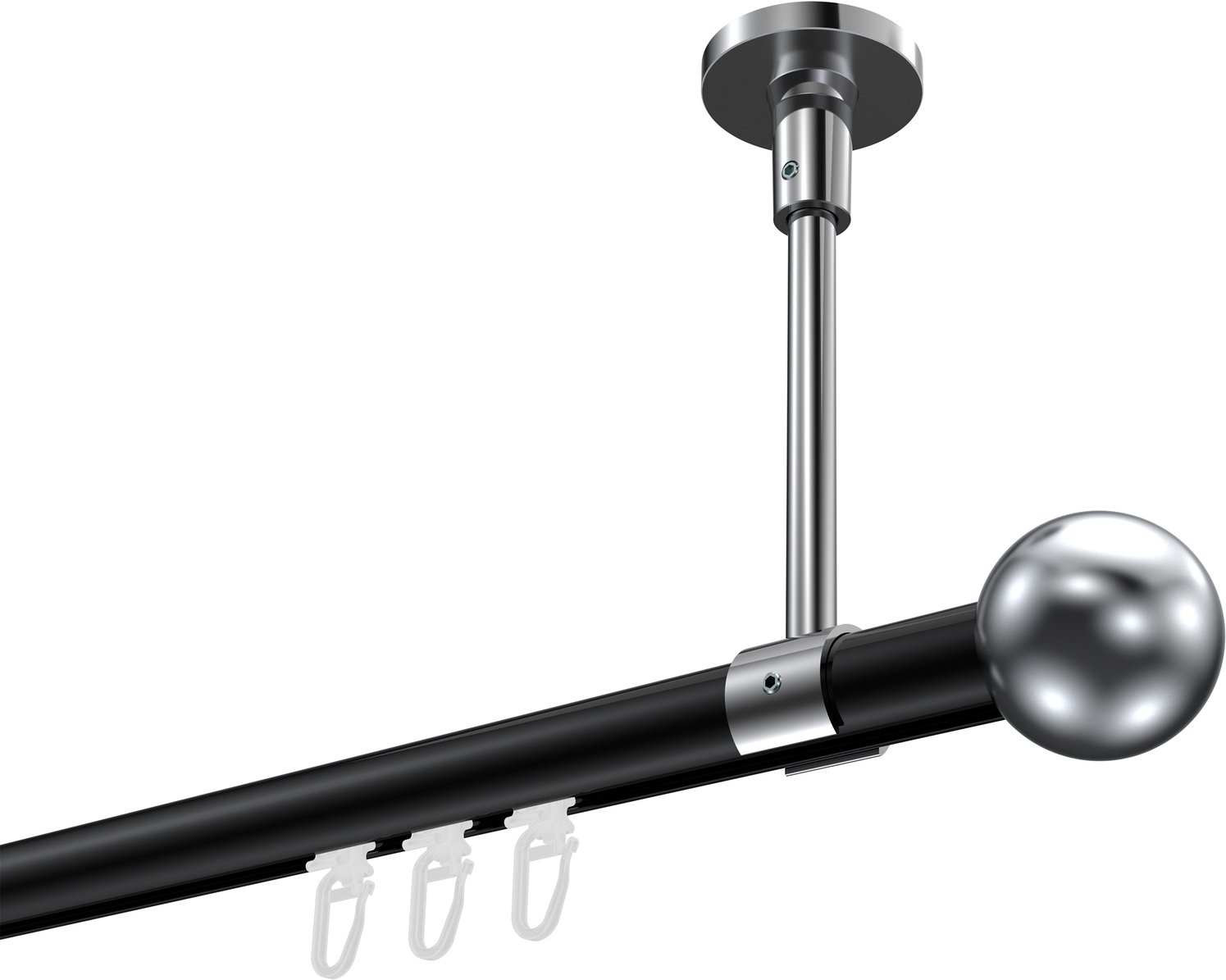 Informationen zu Innenlauf Gardinenstange Aluminium / Metall 20 mm Ø SONETTE - Luino Schwarz / Chrom:
