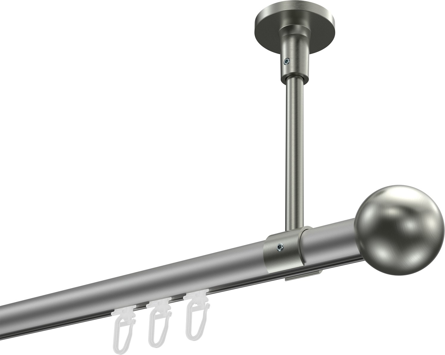 Gardinenstangen mit Innenlauf aus Aluminium / Metall in 20 mm Ø, 1-läufig, Modell SONETTE - Luino Silbergrau / Edelstahl-Optik
