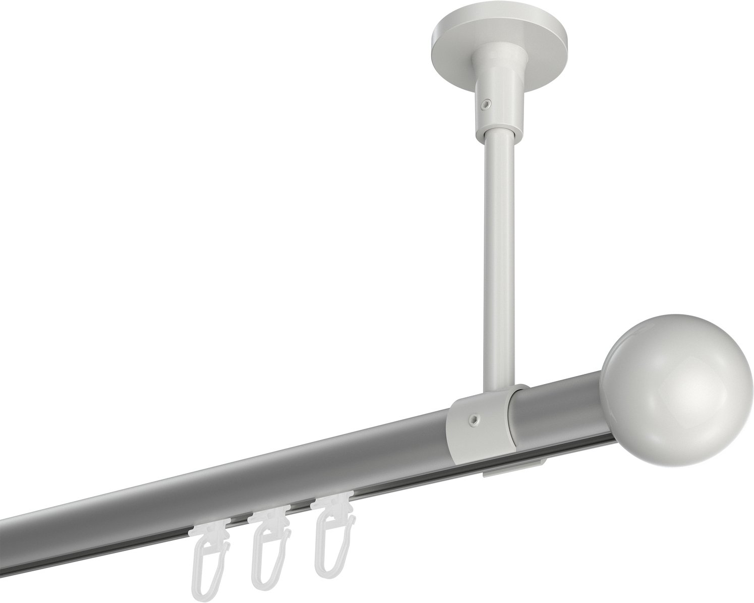 Gardinenstangen mit Innenlauf aus Aluminium / Metall in 20 mm Ø, 1-läufig, Modell SONETTE - Luino Silbergrau / Weiß