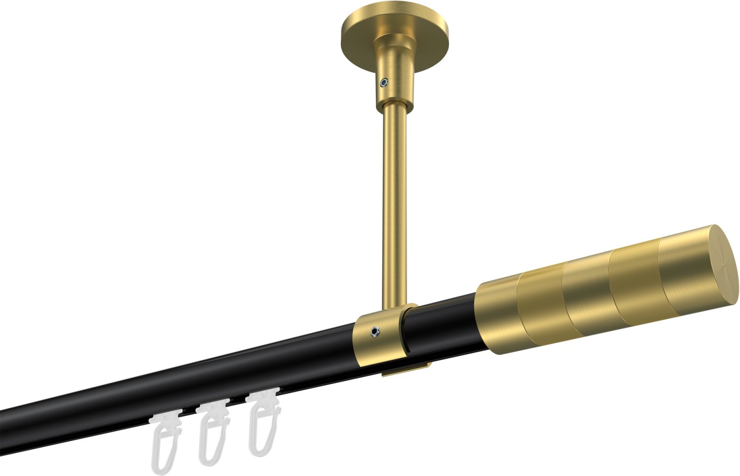 Gardinenstangen mit Innenlauf aus Aluminium / Metall in 20 mm Ø, 1-läufig, Modell SONETTE - Mavell Schwarz / Messing-Optik