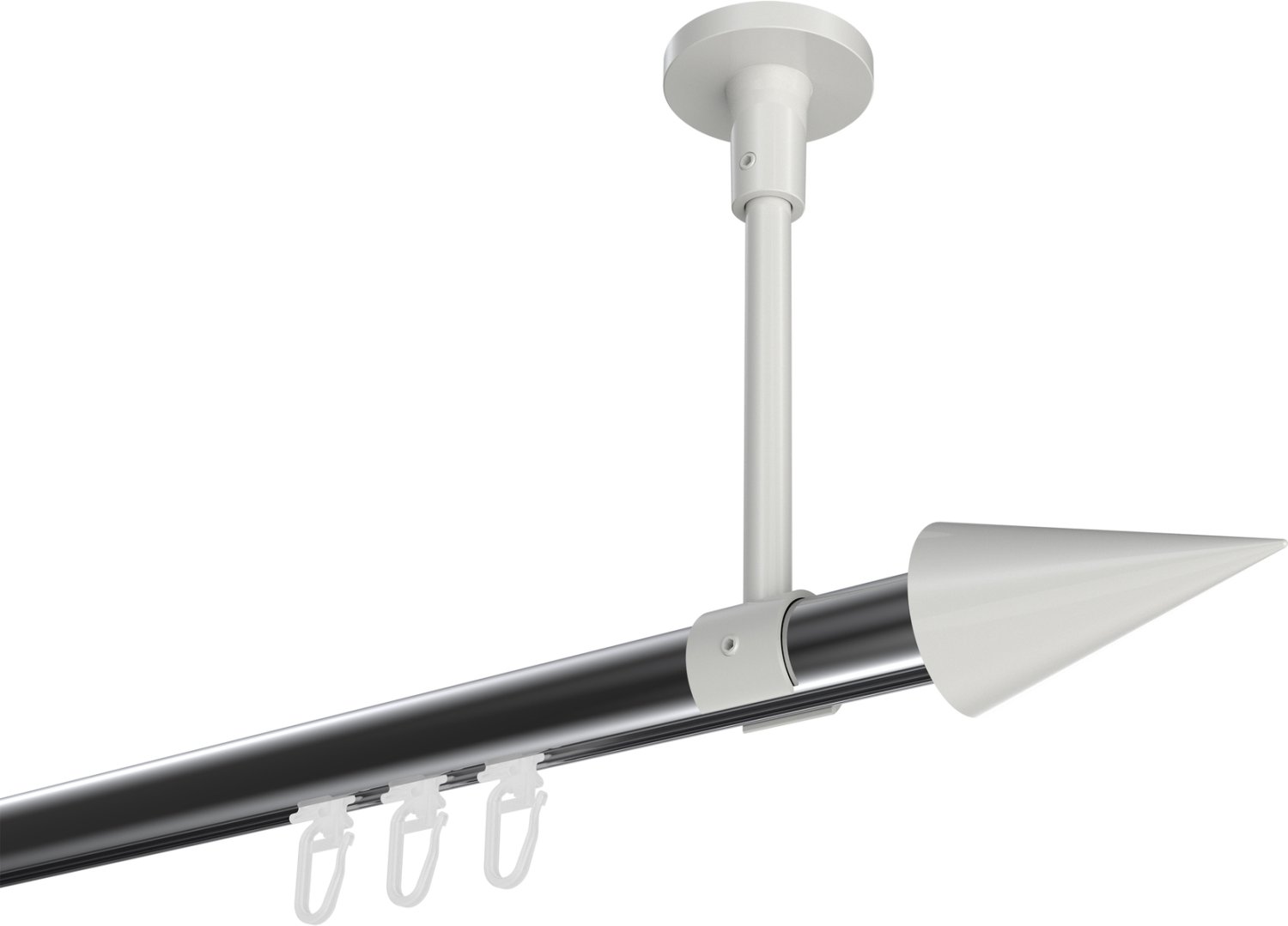 Gardinenstangen mit Innenlauf aus Aluminium / Metall in 20 mm Ø, 1-läufig, Modell SONETTE - Savio Chrom / Weiß