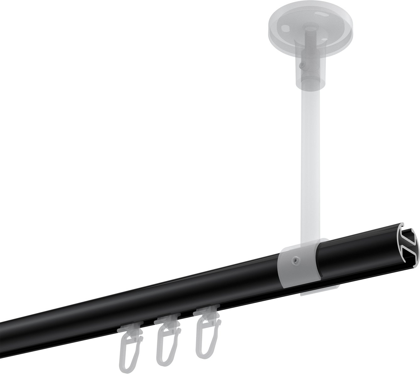 Gardinenstangen mit Innenlauf aus Aluminium / Metall in 20 mm Ø, 1-läufig, Modell SONETTE - Savio Schwarz / Weiß