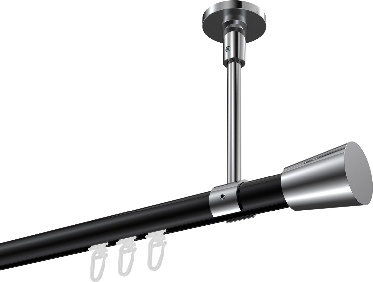 Gardinenstangen mit Innenlauf aus Aluminium / Metall in 20 mm Ø, 1-läufig, Modell SONETTE - Sitra Schwarz / Chrom